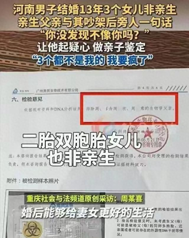 等待鉴定结果的日子,对周先生来说,无疑是一种煎熬。每一分每一秒,都像是在受刑,夜晚躺在床上,他辗转反侧,脑海里全是各种可怕的猜测。终于,鉴定报告出来了,当周先生看到报告上那一行行清晰的字,“与三个女儿均无血缘关系” 时,他感觉整个世界都在瞬间崩塌。那一刻,他呆立在原地,久久无法动弹,仿佛灵魂都已被抽离。